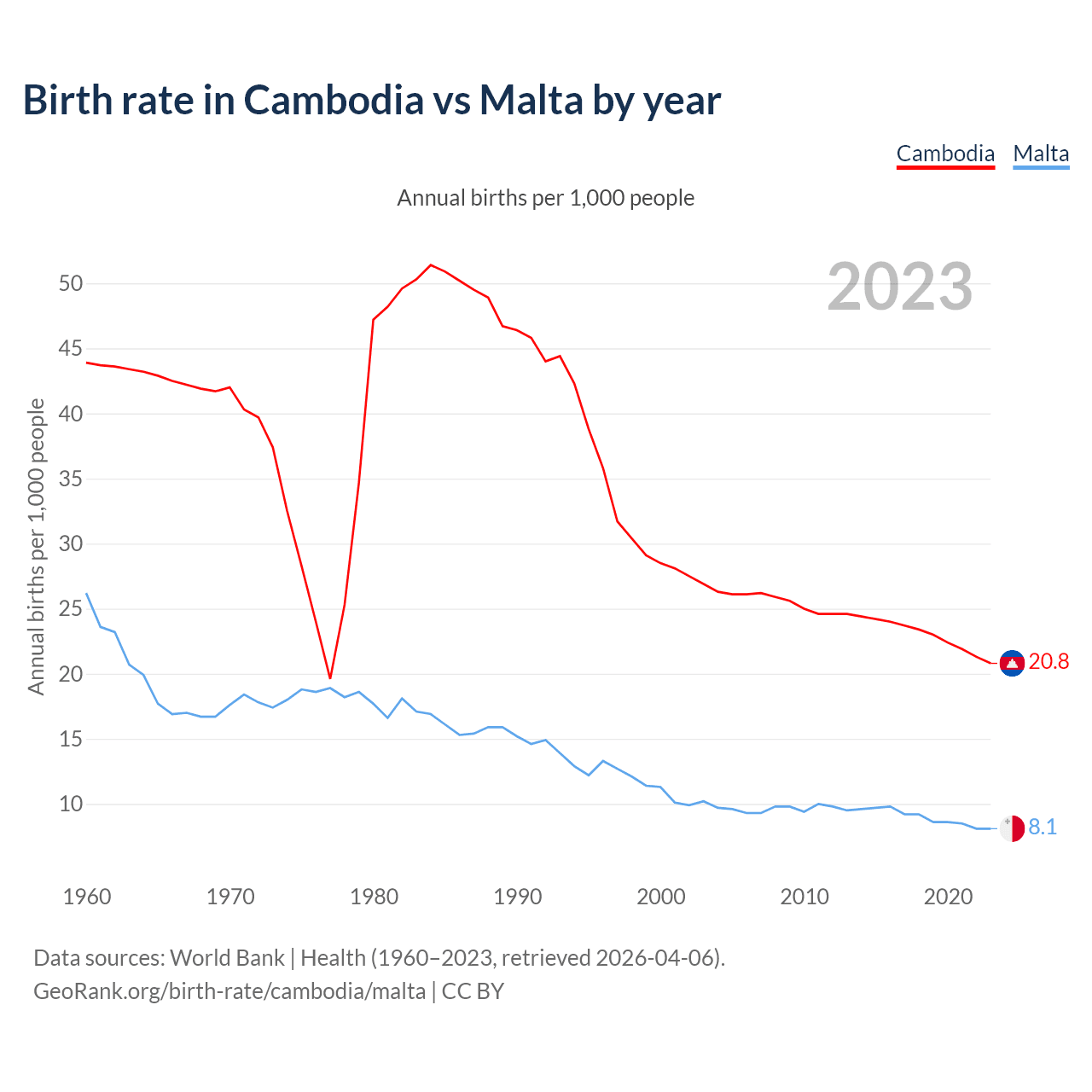 GeoRank.org/birth-rate/cambodia/malta | CC BY