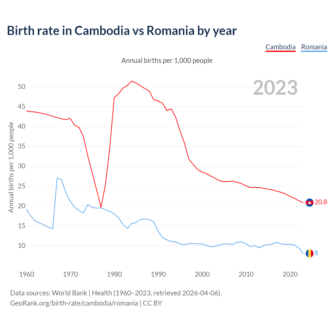 GeoRank.org/birth-rate/cambodia/romania | CC BY