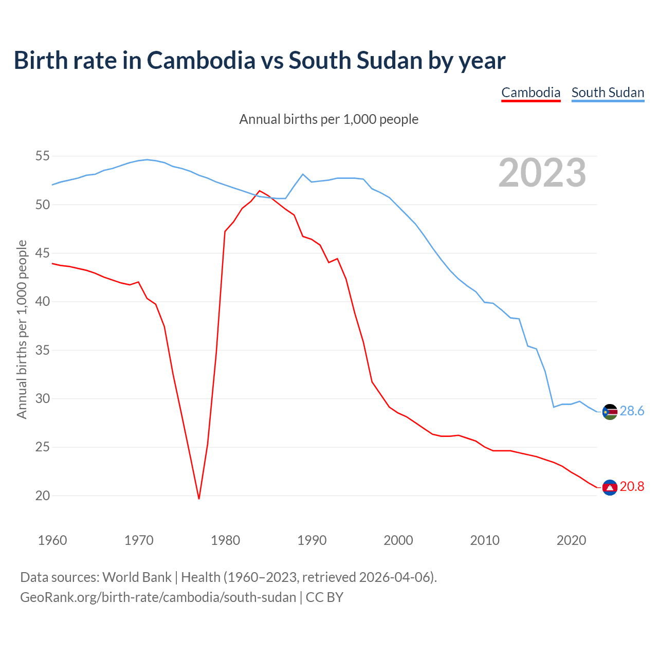 GeoRank.org/birth-rate/cambodia/south-sudan | CC BY