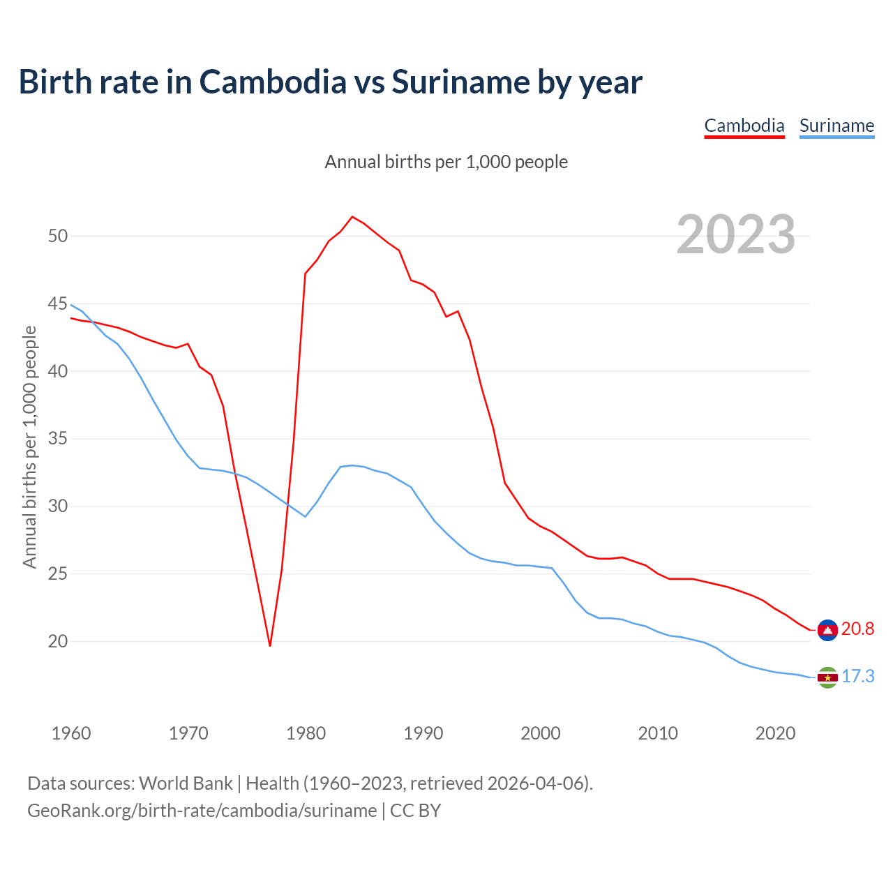 GeoRank.org/birth-rate/cambodia/suriname | CC BY