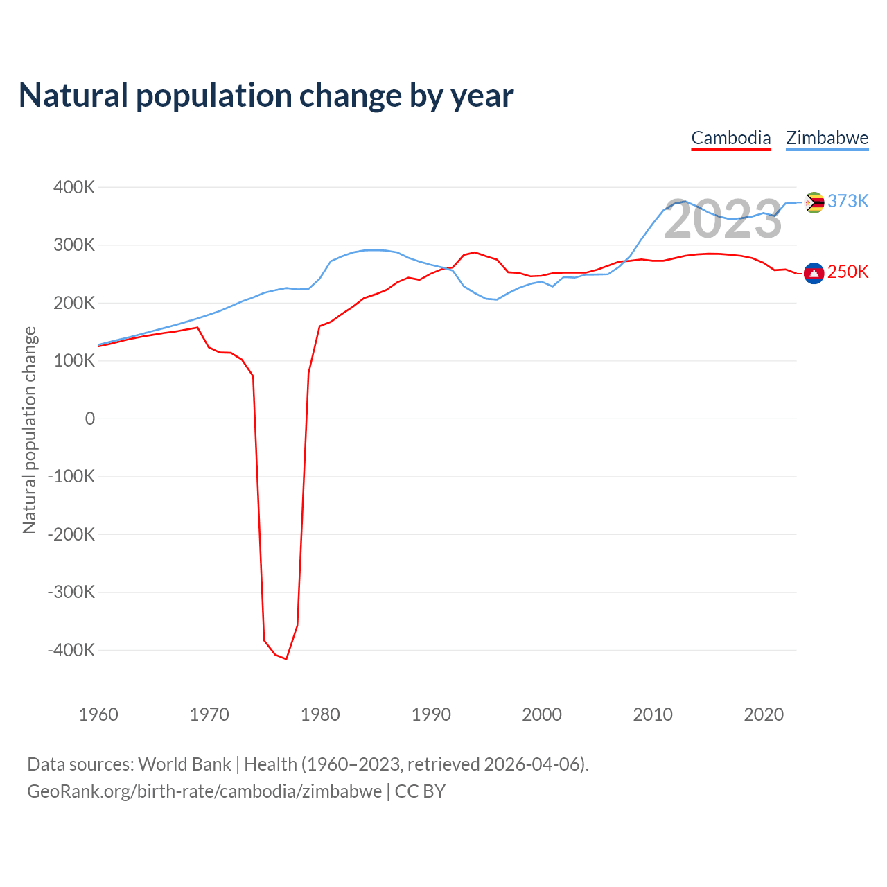- Cambodia is ranked 71/196 by birth rate compared to 31/196 for Zimbabwe.