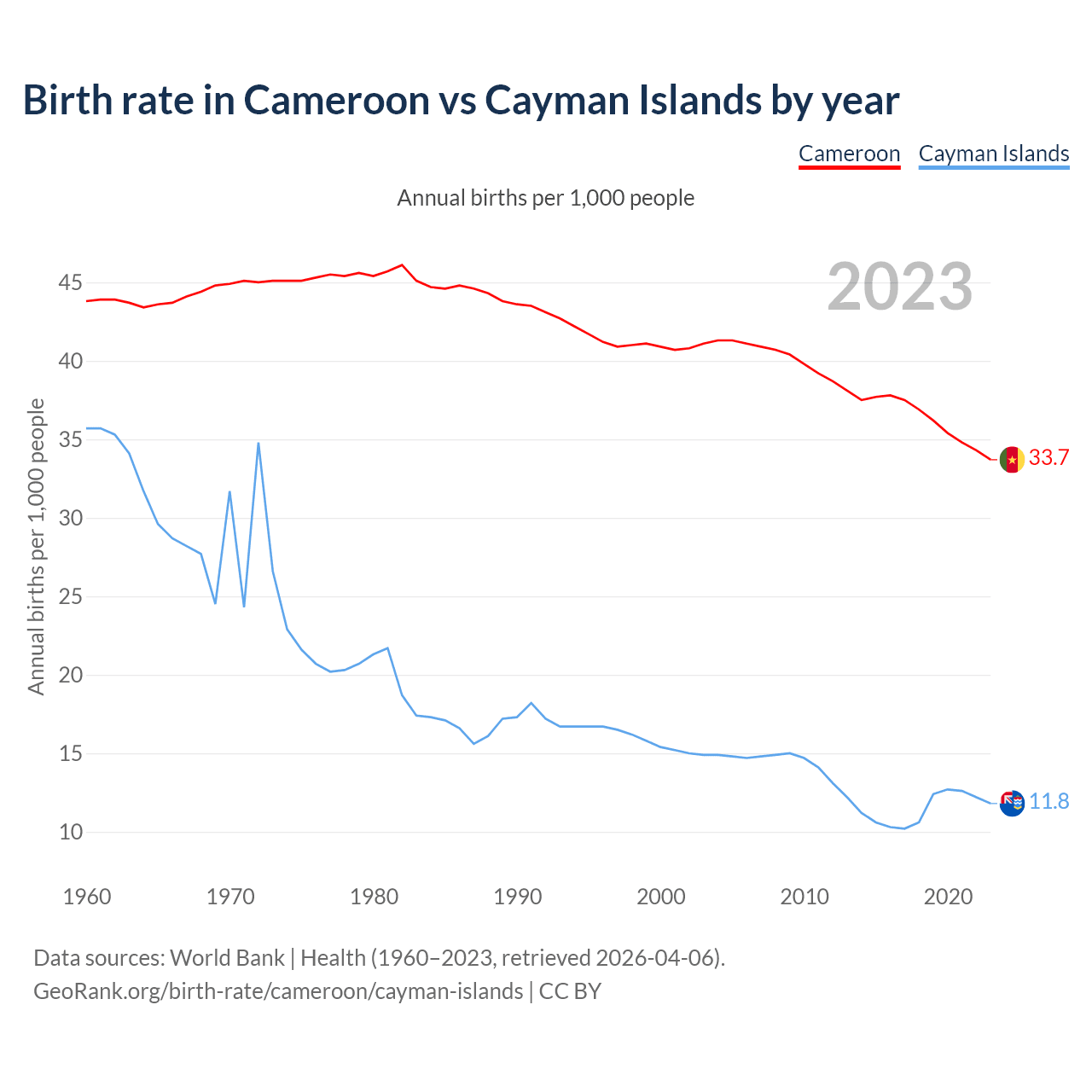GeoRank.org/birth-rate/cameroon/cayman-islands | CC BY