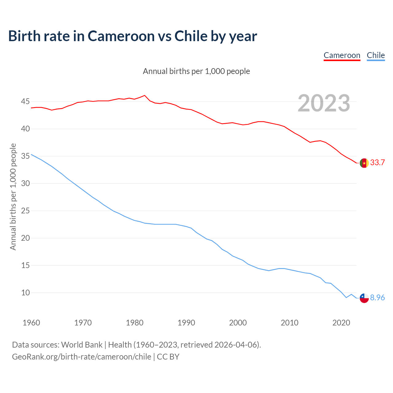 GeoRank.org/birth-rate/cameroon/chile | CC BY