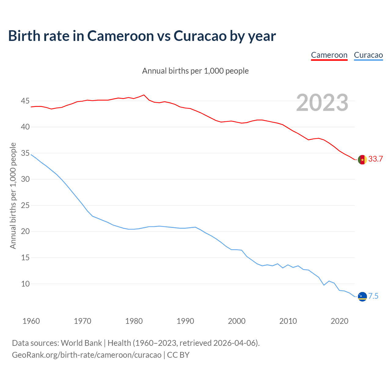GeoRank.org/birth-rate/cameroon/curacao | CC BY