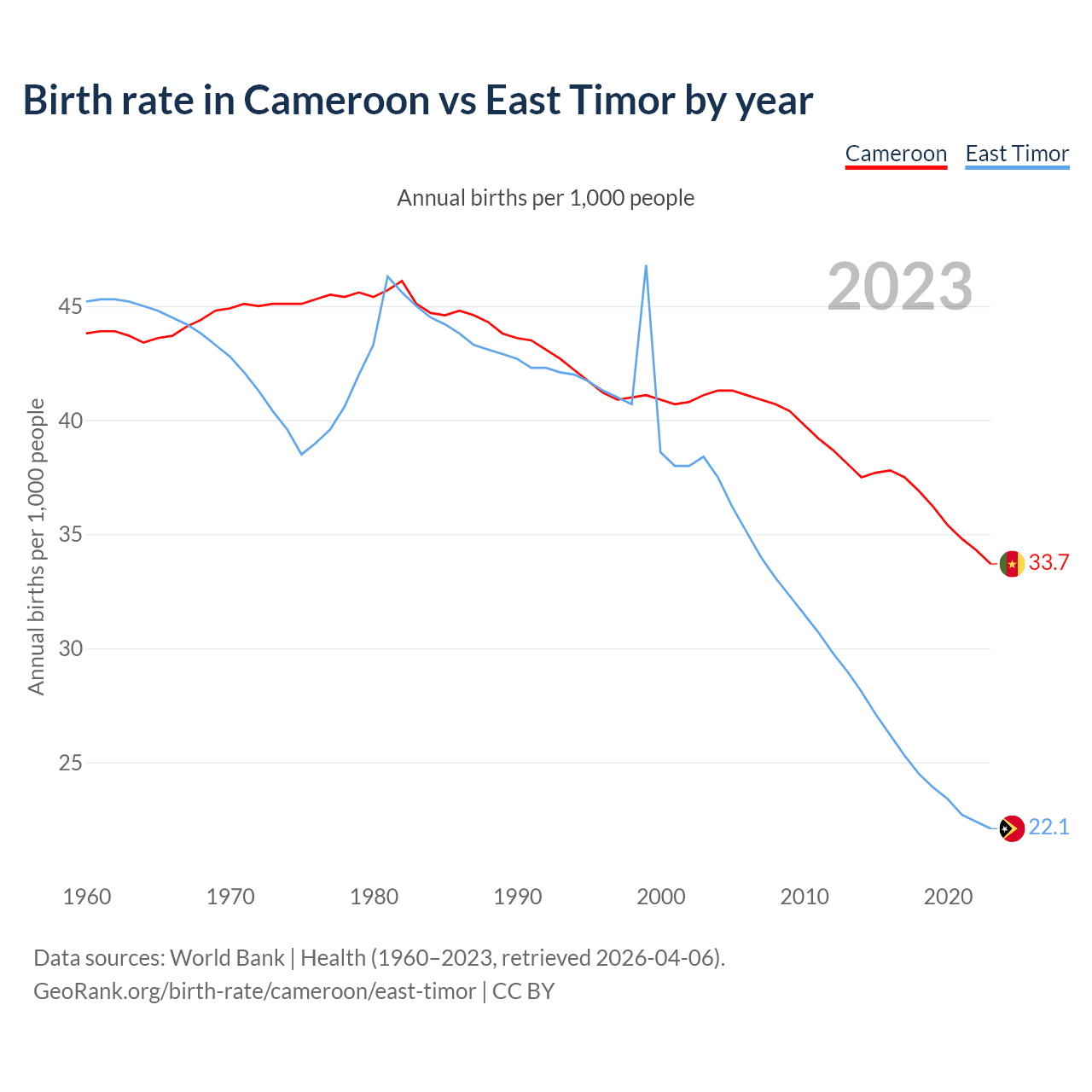 GeoRank.org/birth-rate/cameroon/east-timor | CC BY