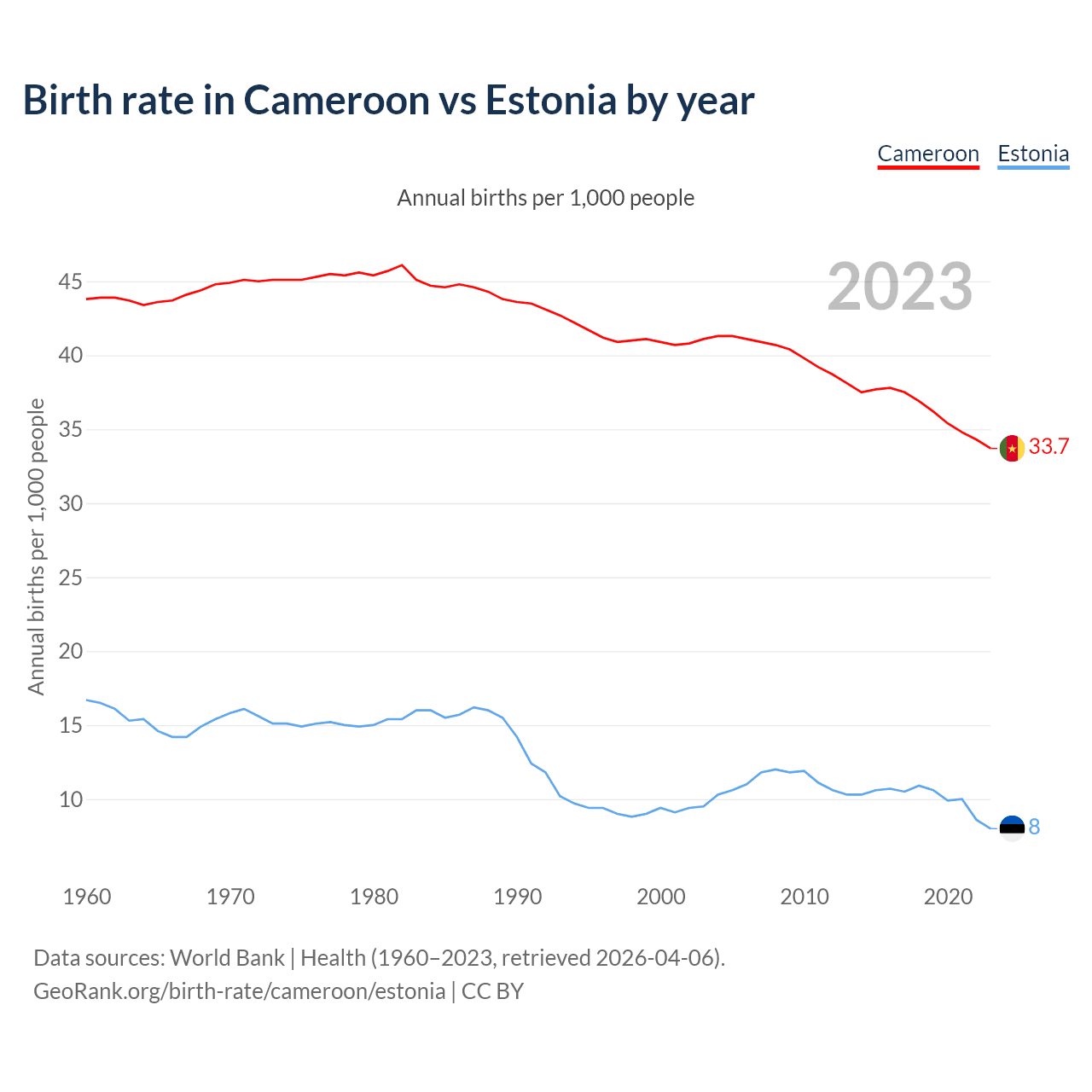 GeoRank.org/birth-rate/cameroon/estonia | CC BY