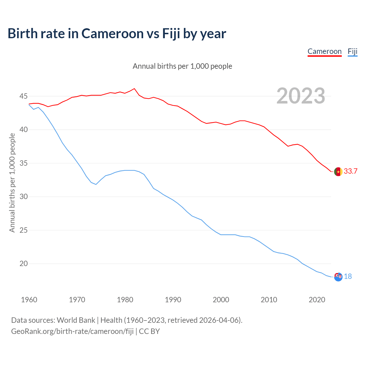 GeoRank.org/birth-rate/cameroon/fiji | CC BY