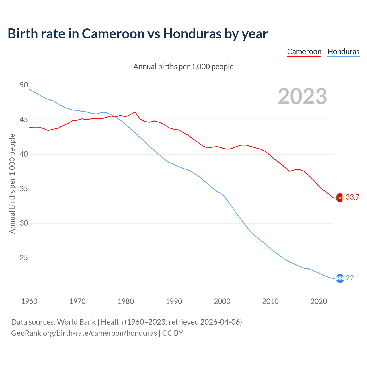 GeoRank.org/birth-rate/cameroon/honduras | CC BY