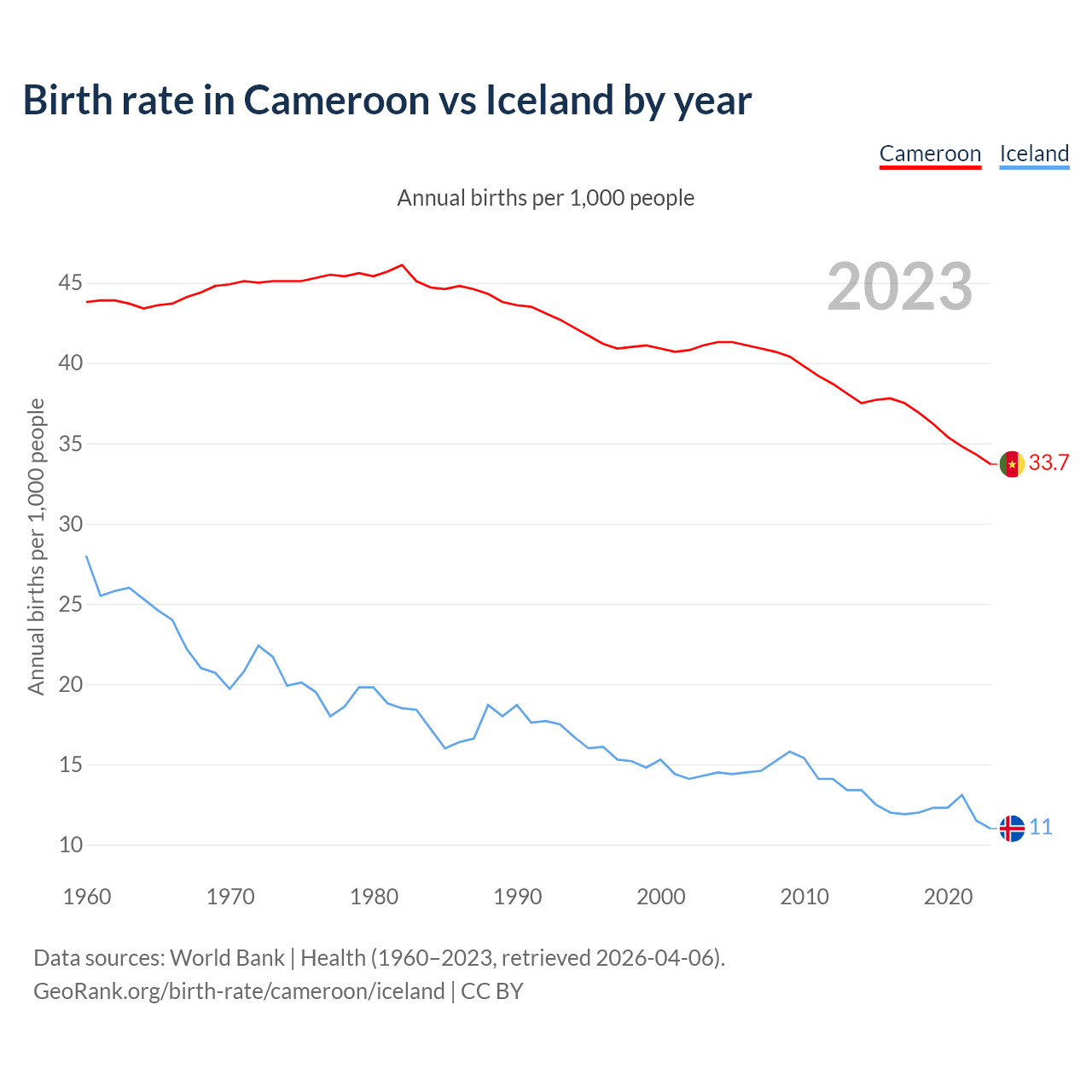 GeoRank.org/birth-rate/cameroon/iceland | CC BY