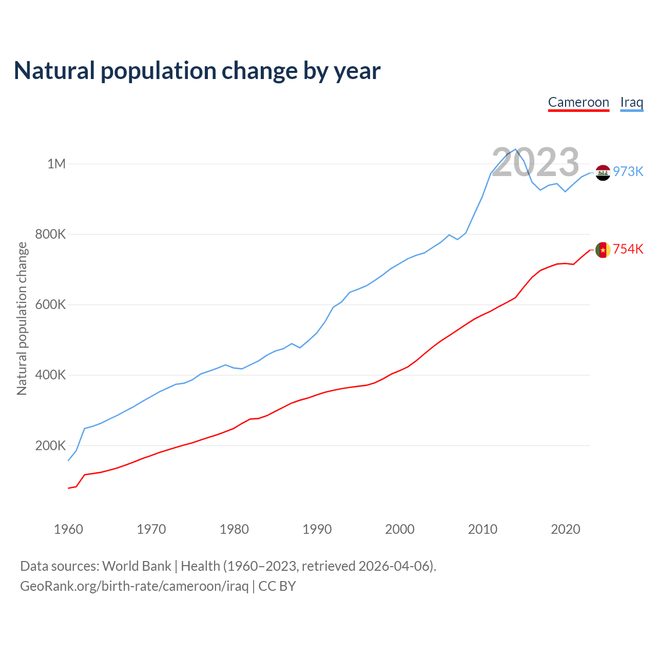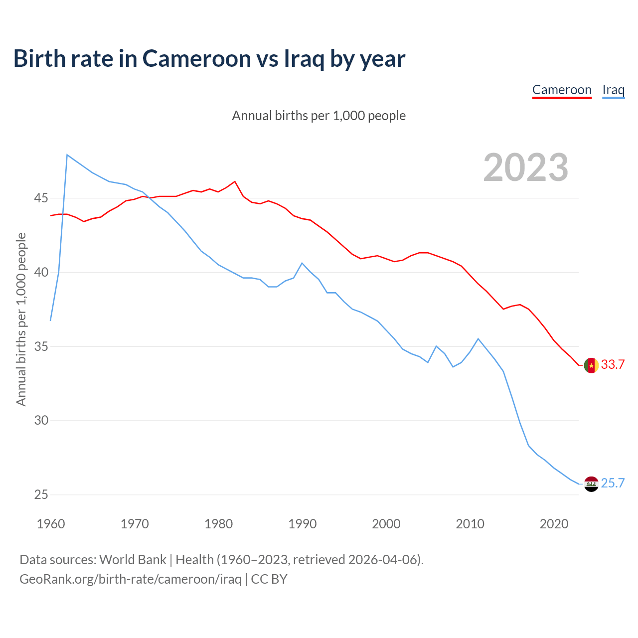 GeoRank.org/birth-rate/cameroon/iraq | CC BY
