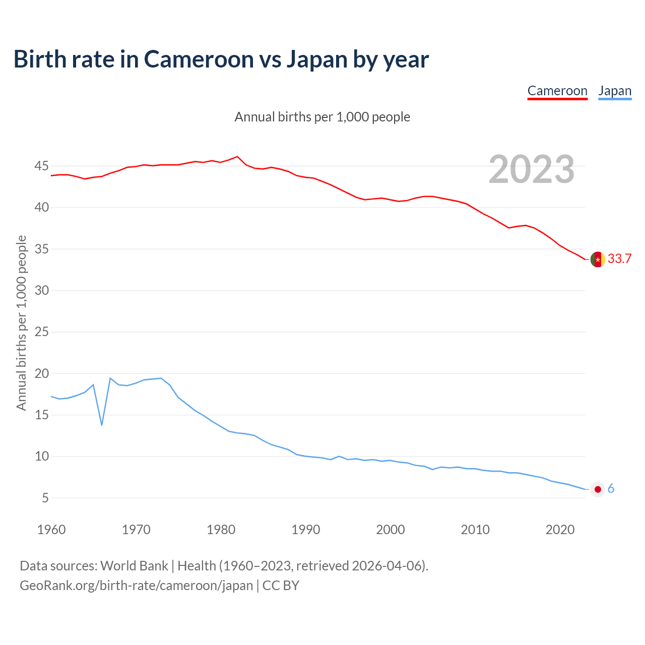 GeoRank.org/birth-rate/cameroon/japan | CC BY
