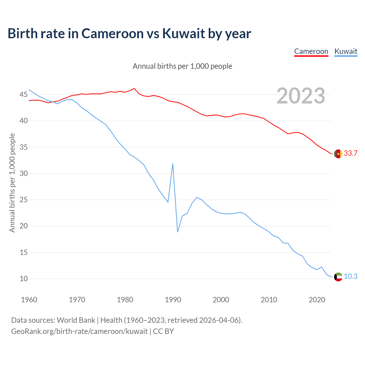 GeoRank.org/birth-rate/cameroon/kuwait | CC BY