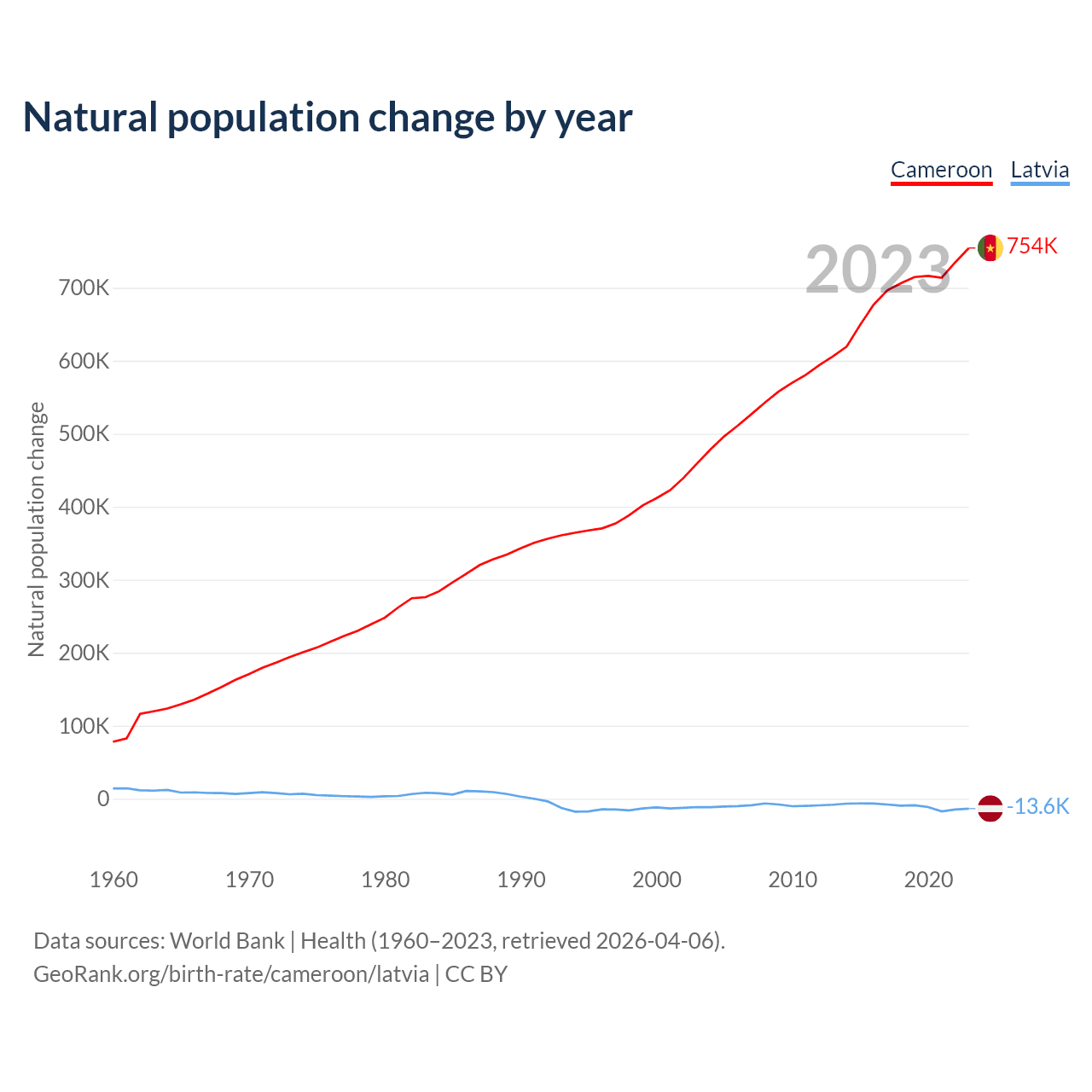 GeoRank.org/birth-rate/cameroon/latvia | CC BY