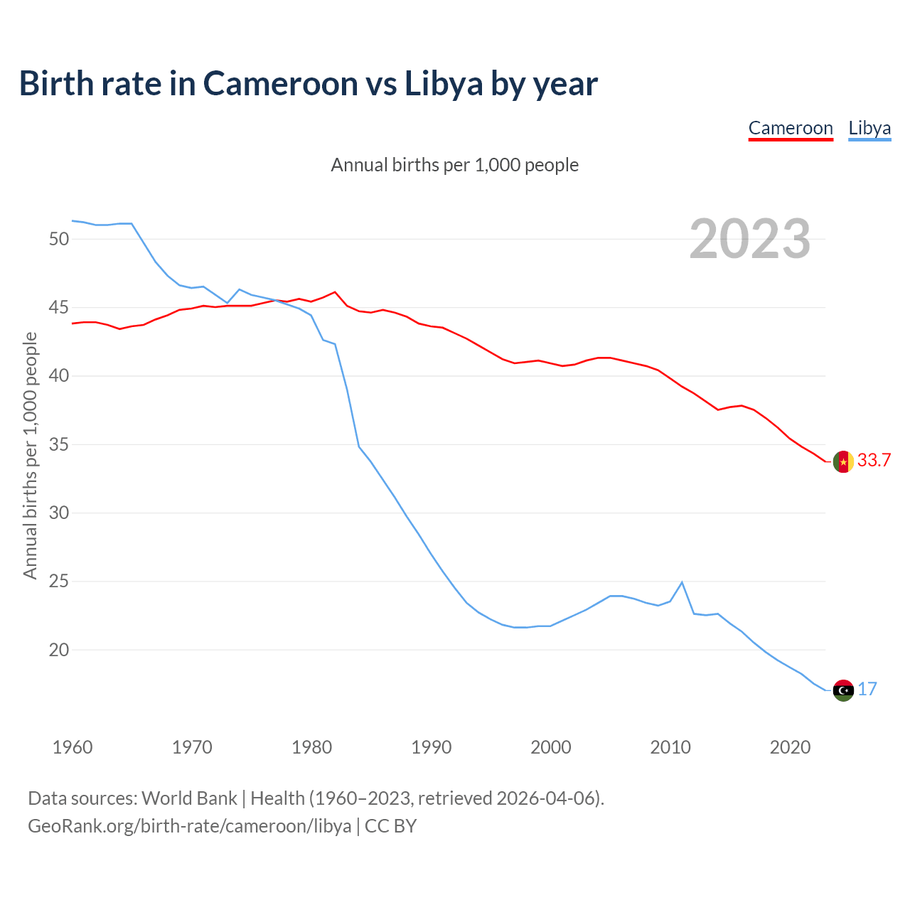 GeoRank.org/birth-rate/cameroon/libya | CC BY