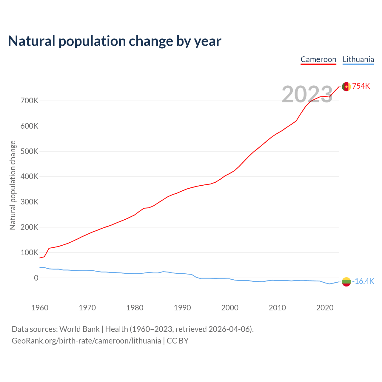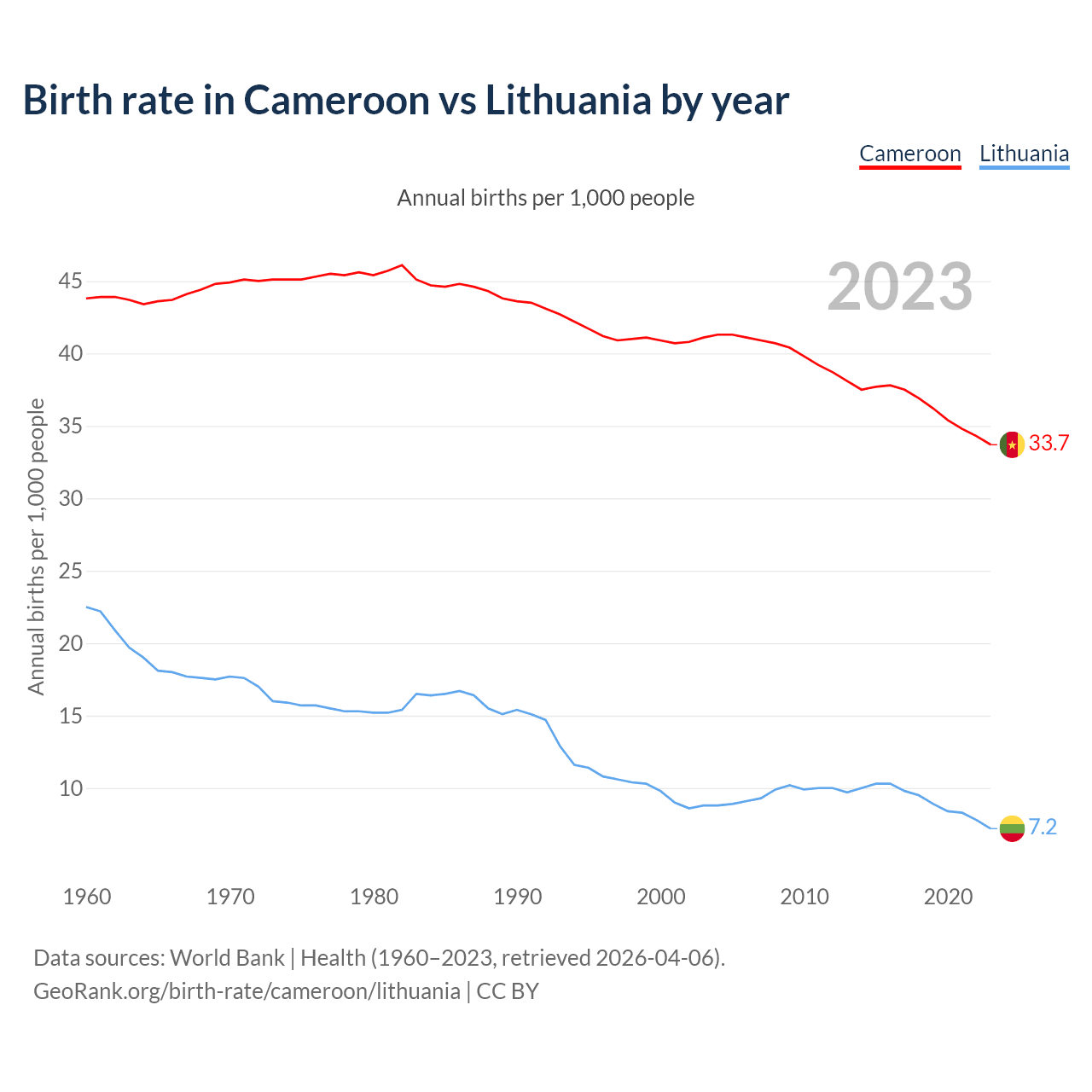 GeoRank.org/birth-rate/cameroon/lithuania | CC BY