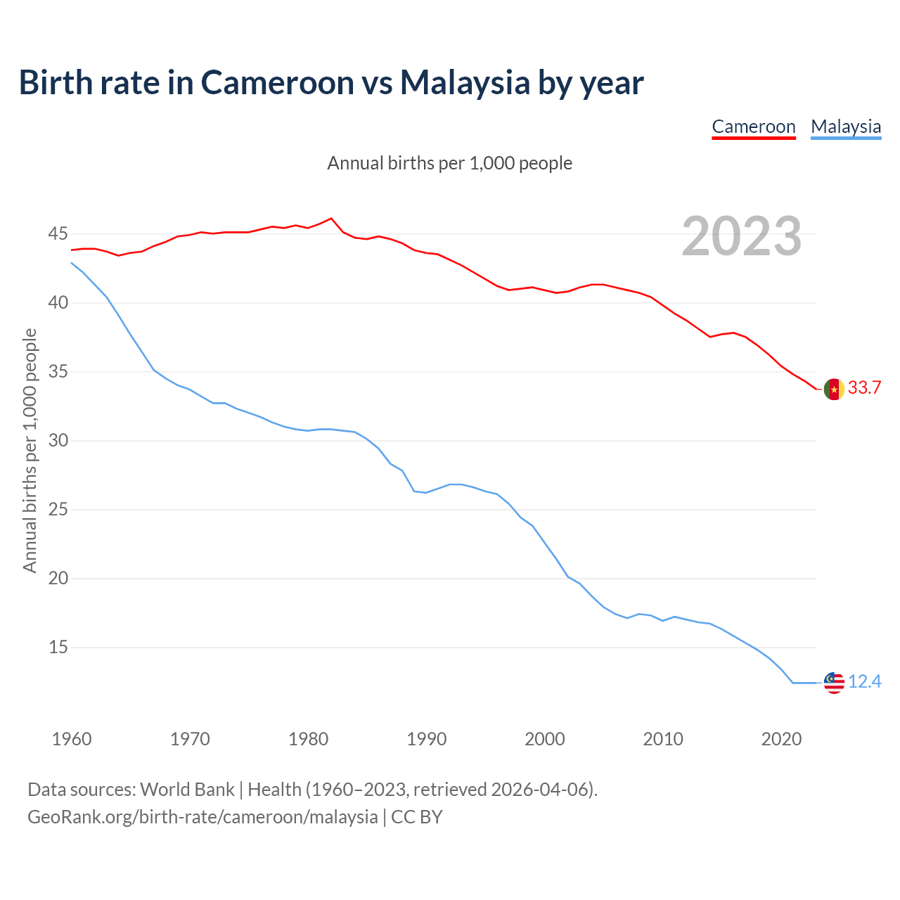 GeoRank.org/birth-rate/cameroon/malaysia | CC BY