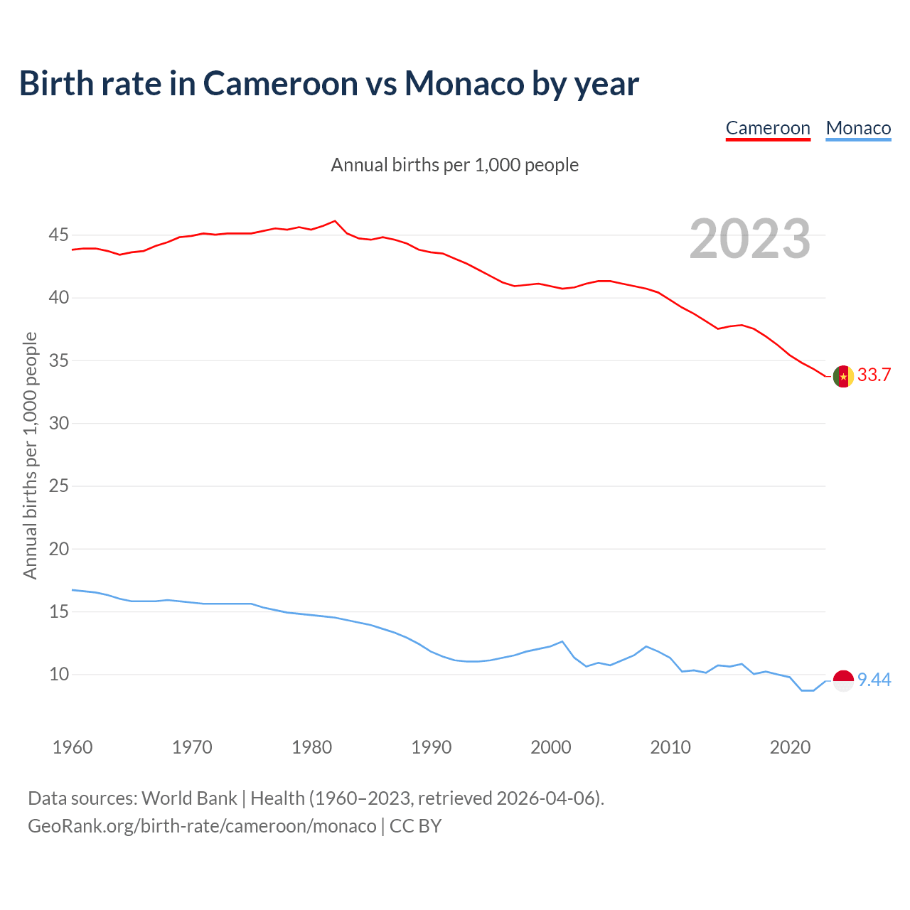 GeoRank.org/birth-rate/cameroon/monaco | CC BY