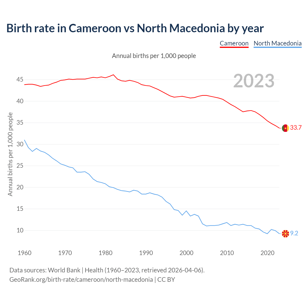GeoRank.org/birth-rate/cameroon/north-macedonia | CC BY