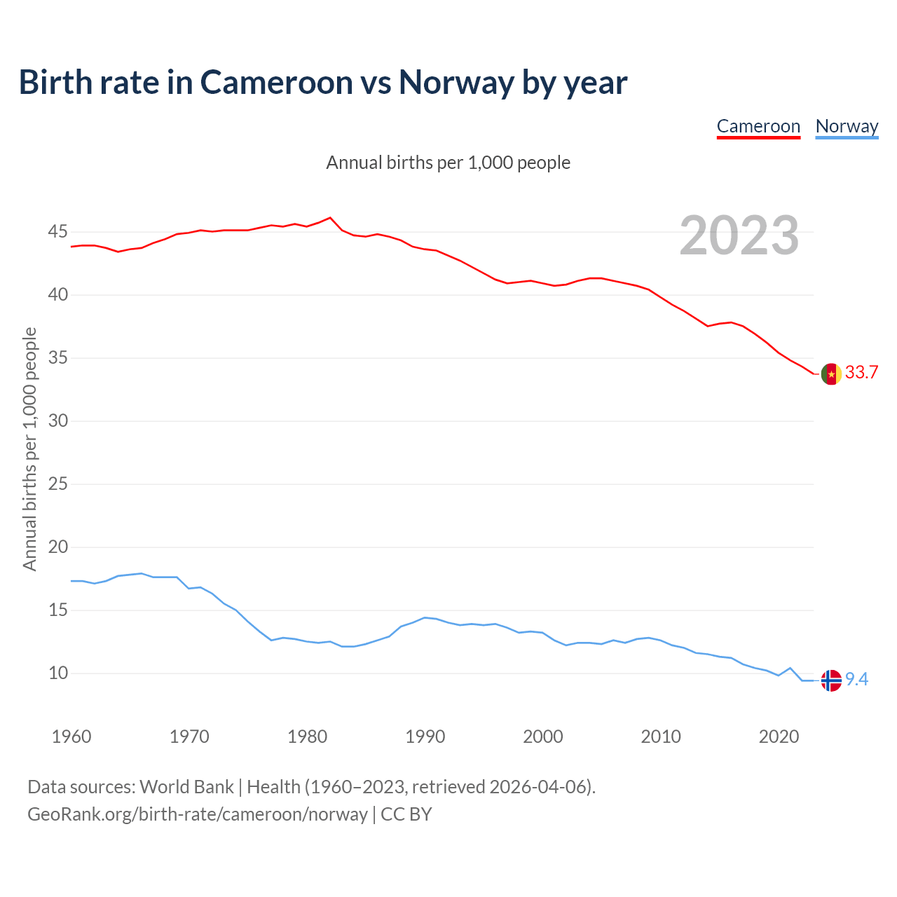 GeoRank.org/birth-rate/cameroon/norway | CC BY