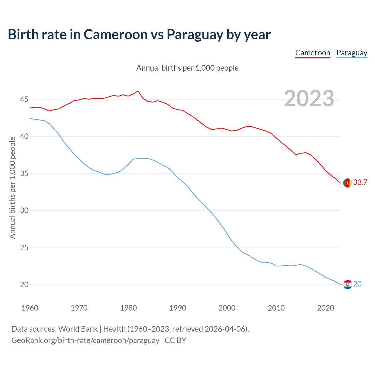 GeoRank.org/birth-rate/cameroon/paraguay | CC BY