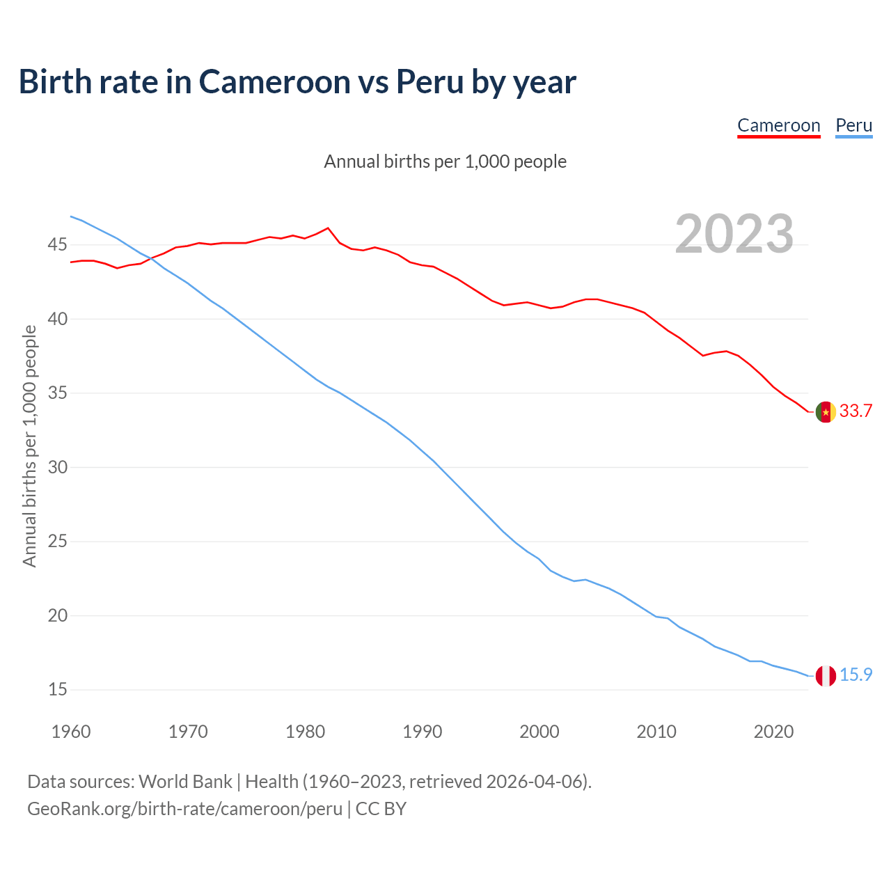 GeoRank.org/birth-rate/cameroon/peru | CC BY