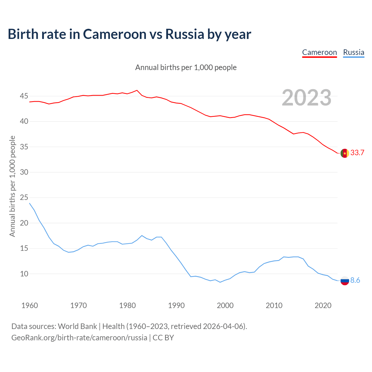 GeoRank.org/birth-rate/cameroon/russia | CC BY
