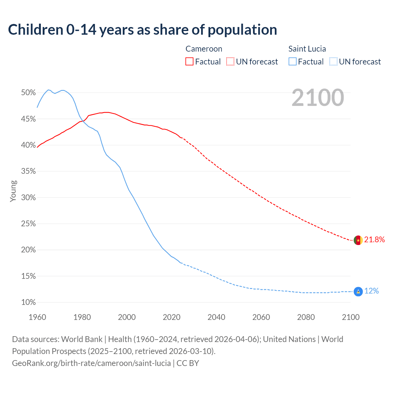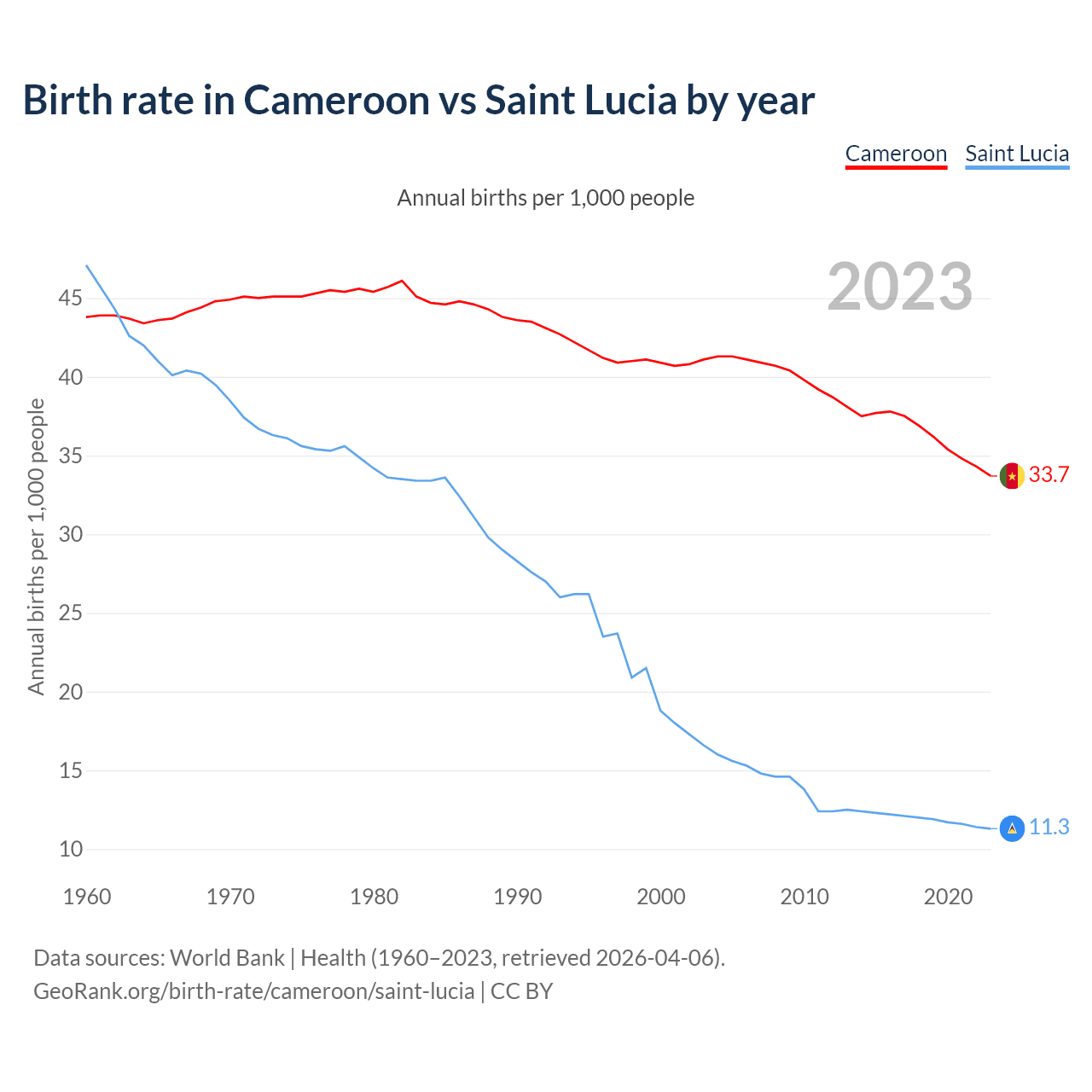 GeoRank.org/birth-rate/cameroon/saint-lucia | CC BY