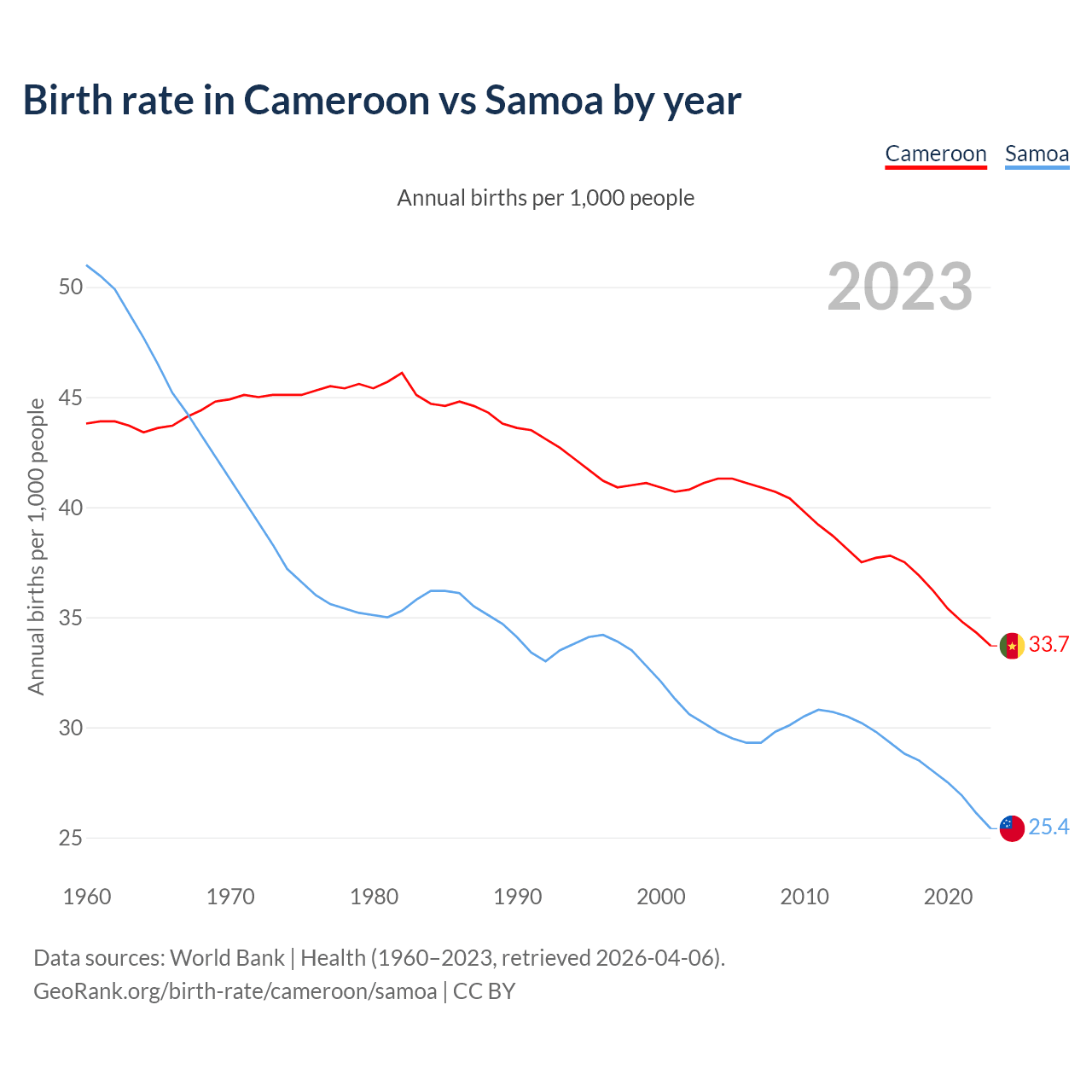 GeoRank.org/birth-rate/cameroon/samoa | CC BY