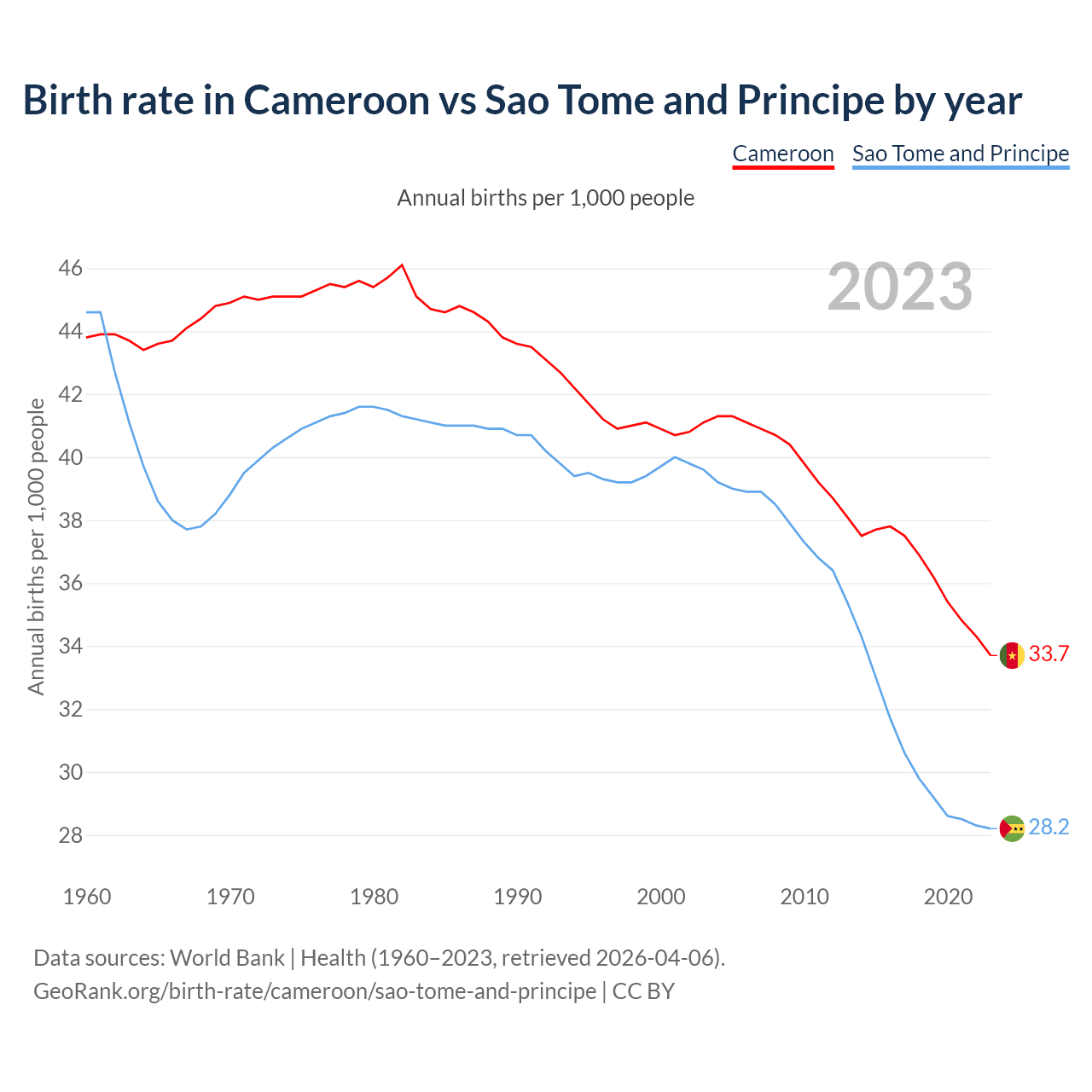 GeoRank.org/birth-rate/cameroon/sao-tome-and-principe | CC BY