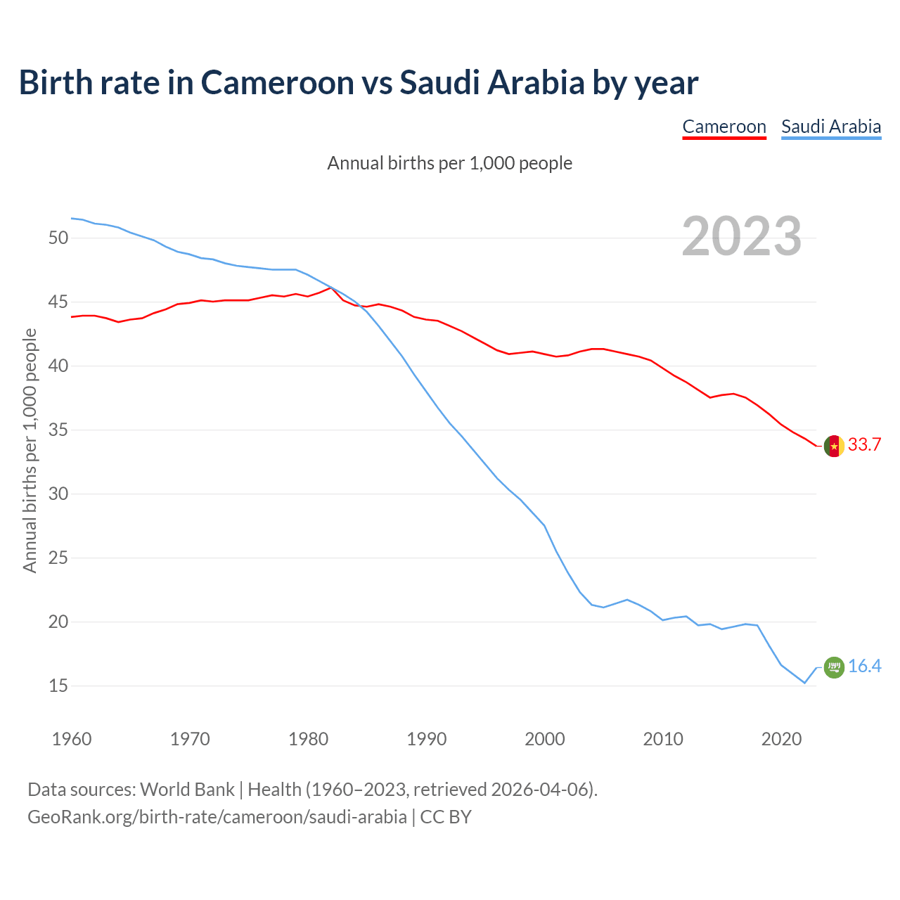 GeoRank.org/birth-rate/cameroon/saudi-arabia | CC BY