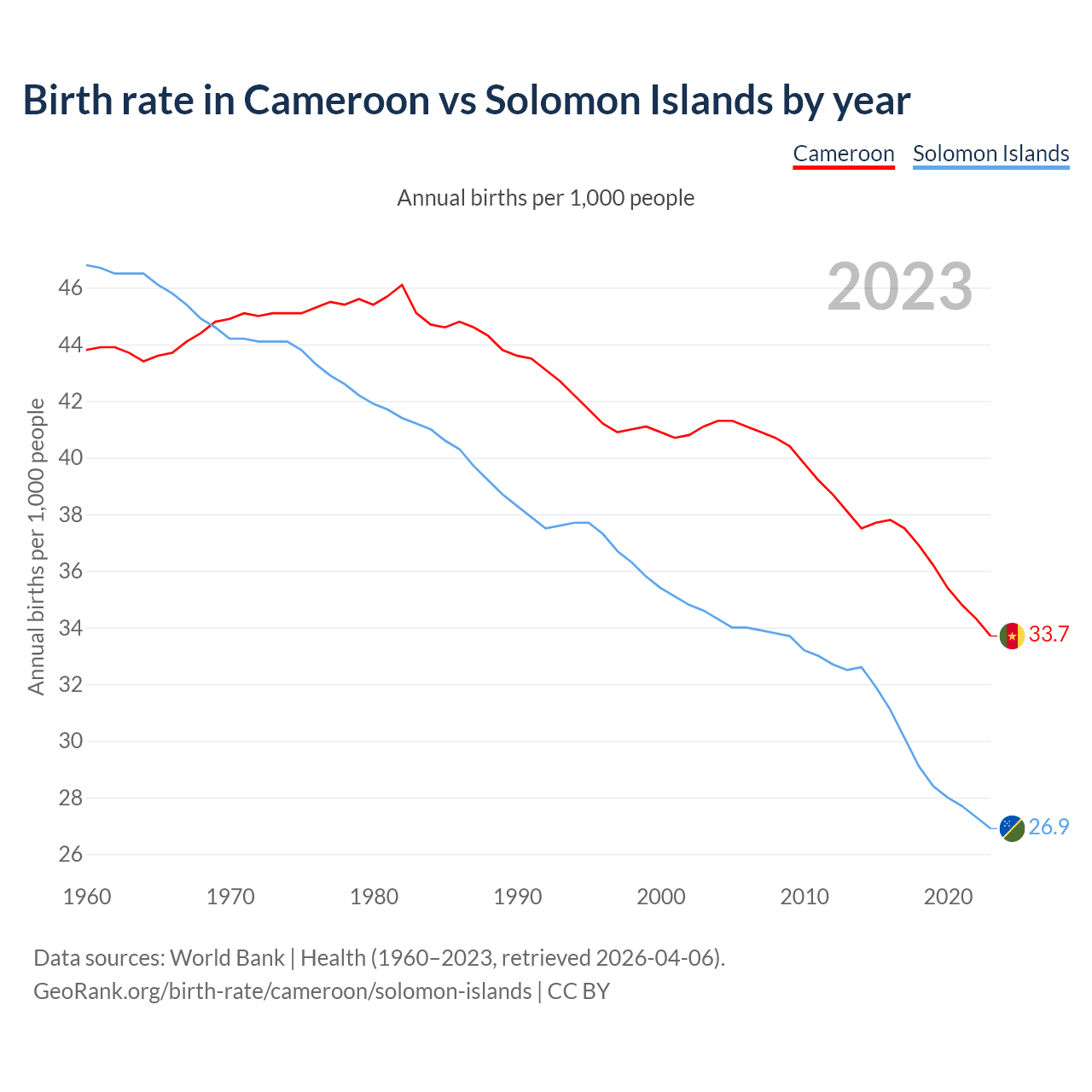 GeoRank.org/birth-rate/cameroon/solomon-islands | CC BY