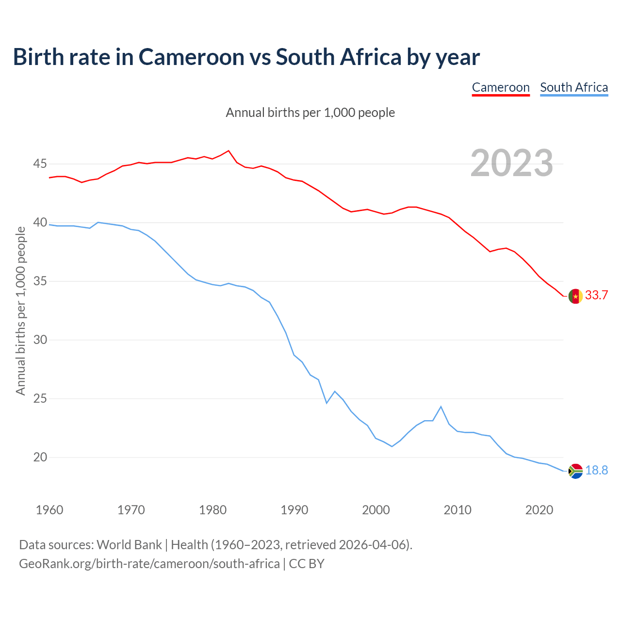 GeoRank.org/birth-rate/cameroon/south-africa | CC BY