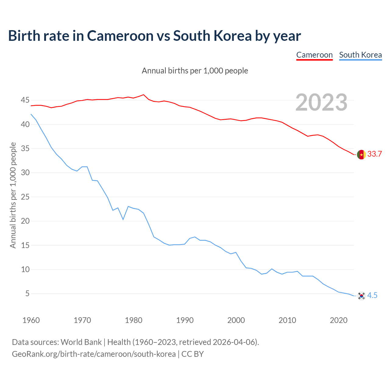 GeoRank.org/birth-rate/cameroon/south-korea | CC BY