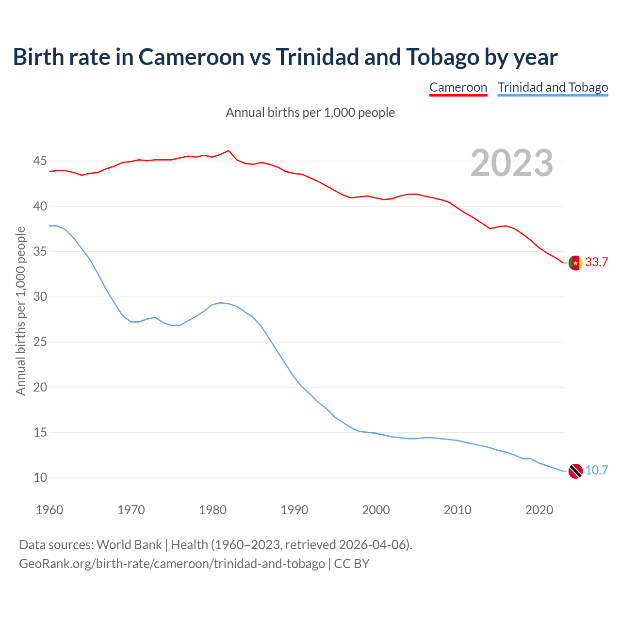 GeoRank.org/birth-rate/cameroon/trinidad-and-tobago | CC BY