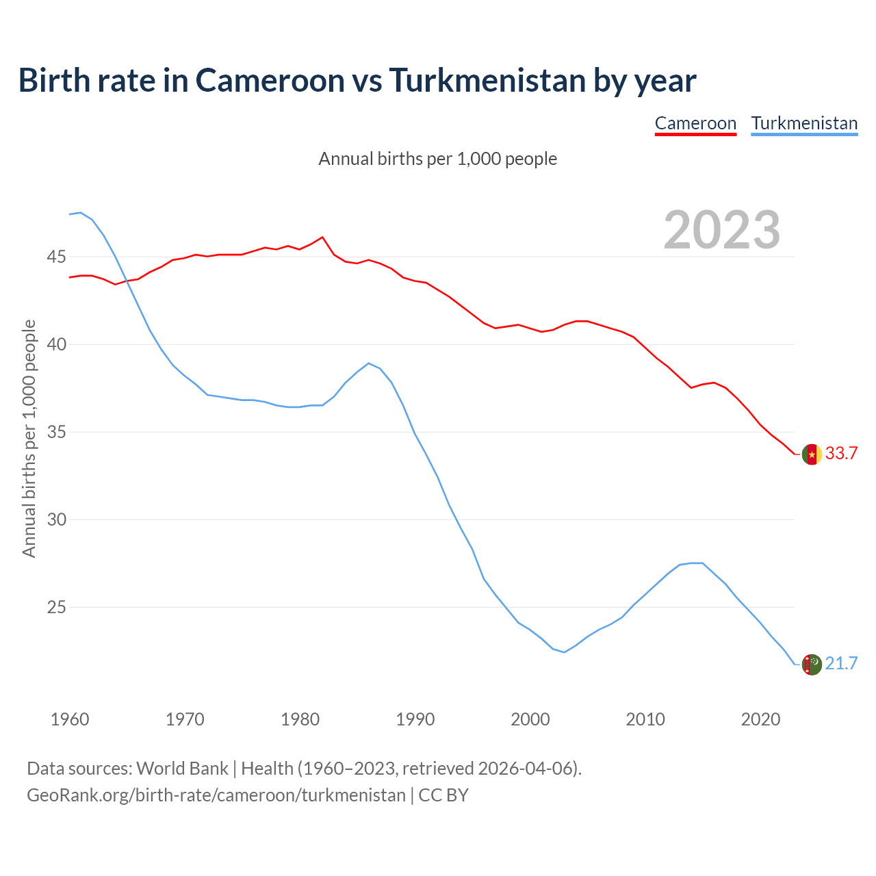 GeoRank.org/birth-rate/cameroon/turkmenistan | CC BY