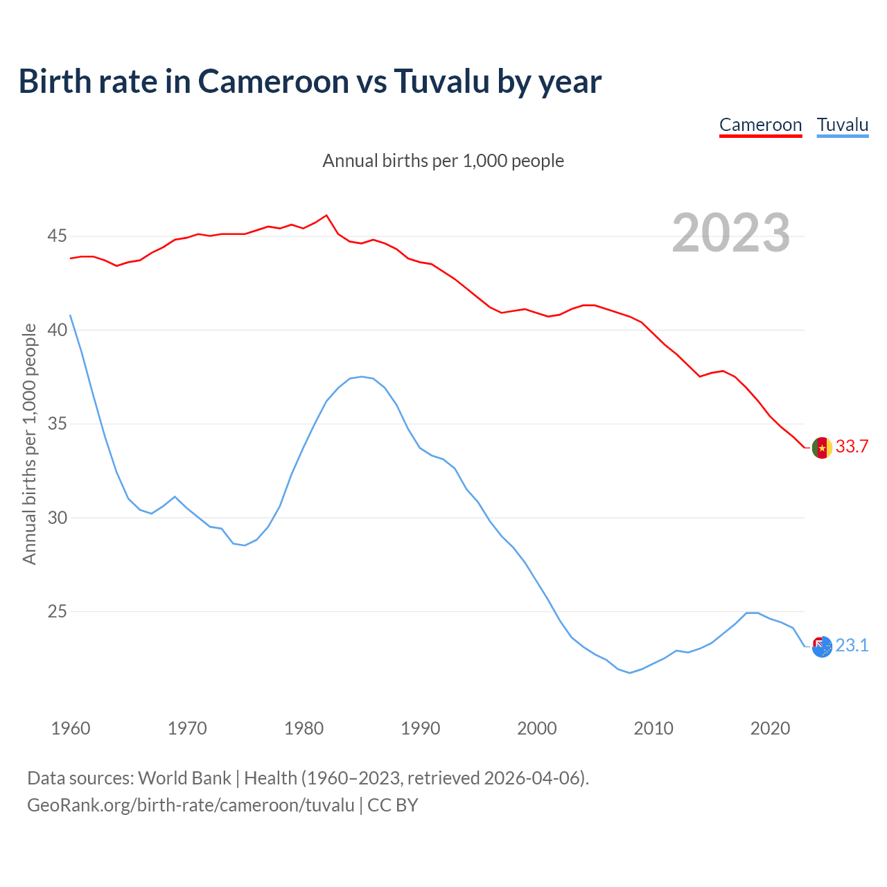 GeoRank.org/birth-rate/cameroon/tuvalu | CC BY