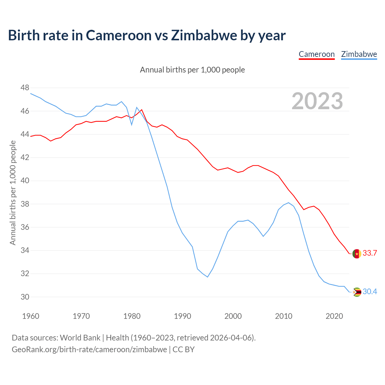 GeoRank.org/birth-rate/cameroon/zimbabwe | CC BY