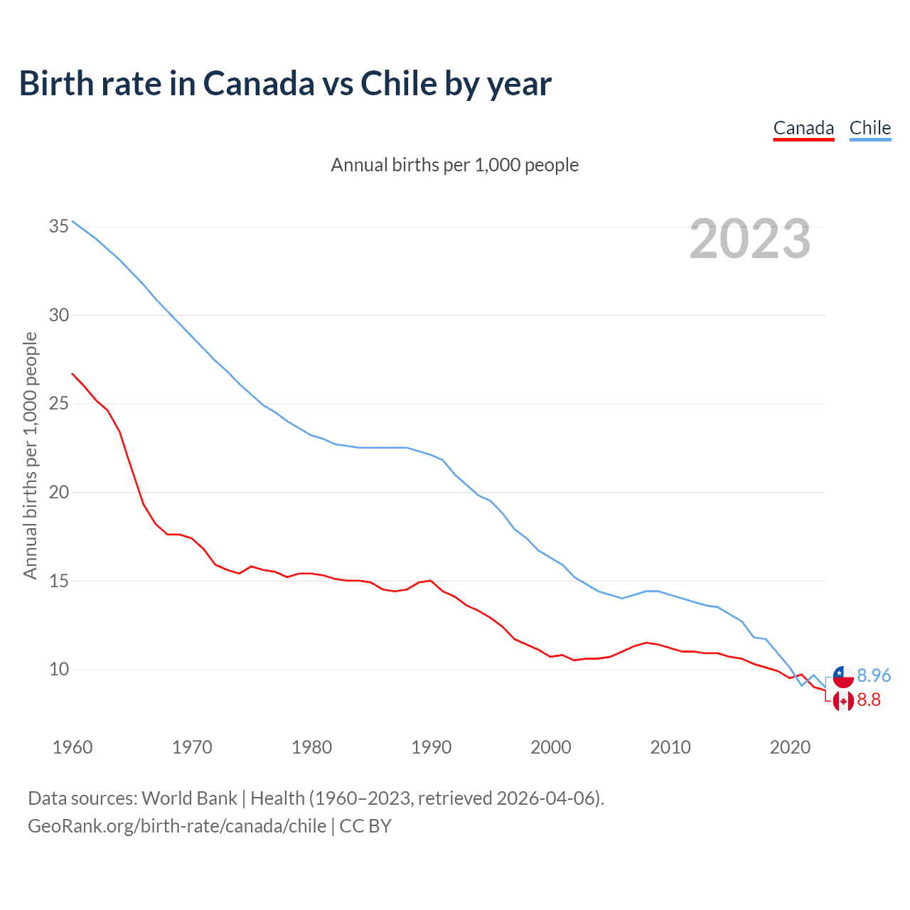 GeoRank.org/birth-rate/canada/chile | CC BY