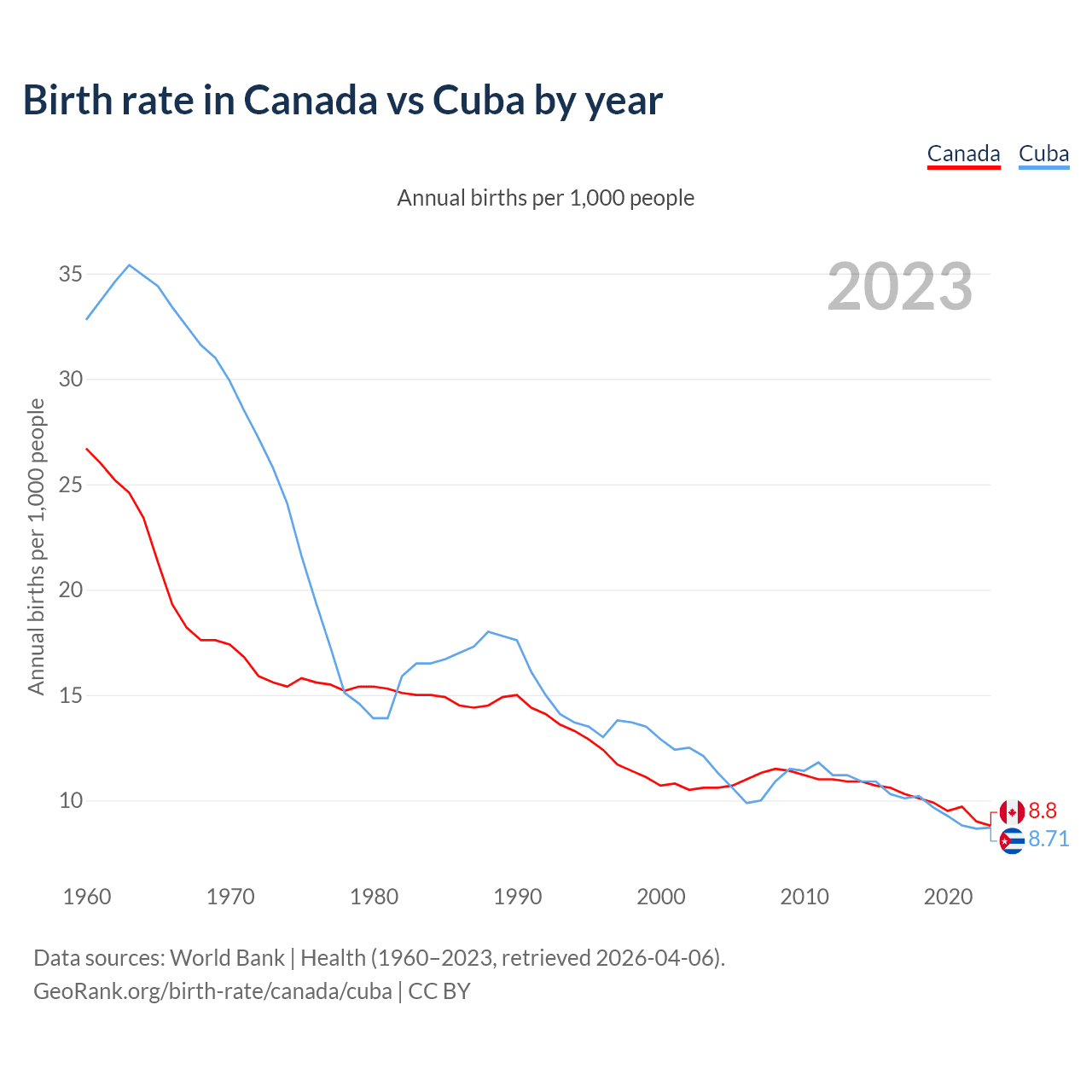 GeoRank.org/birth-rate/canada/cuba | CC BY