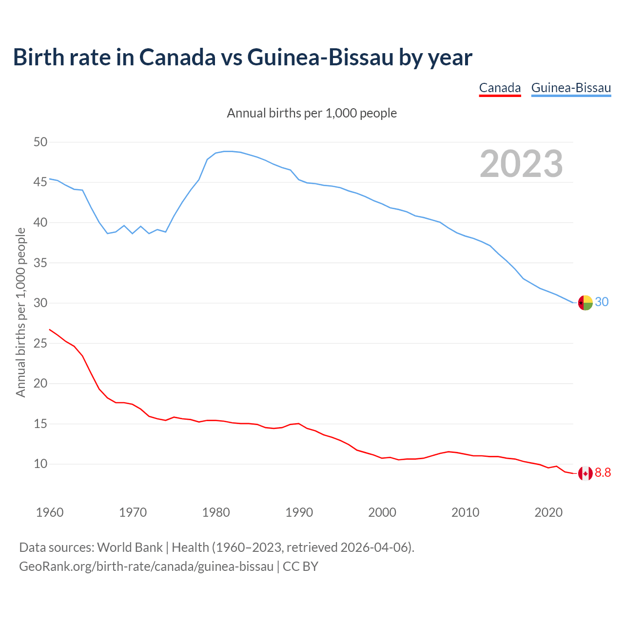 GeoRank.org/birth-rate/canada/guinea-bissau | CC BY