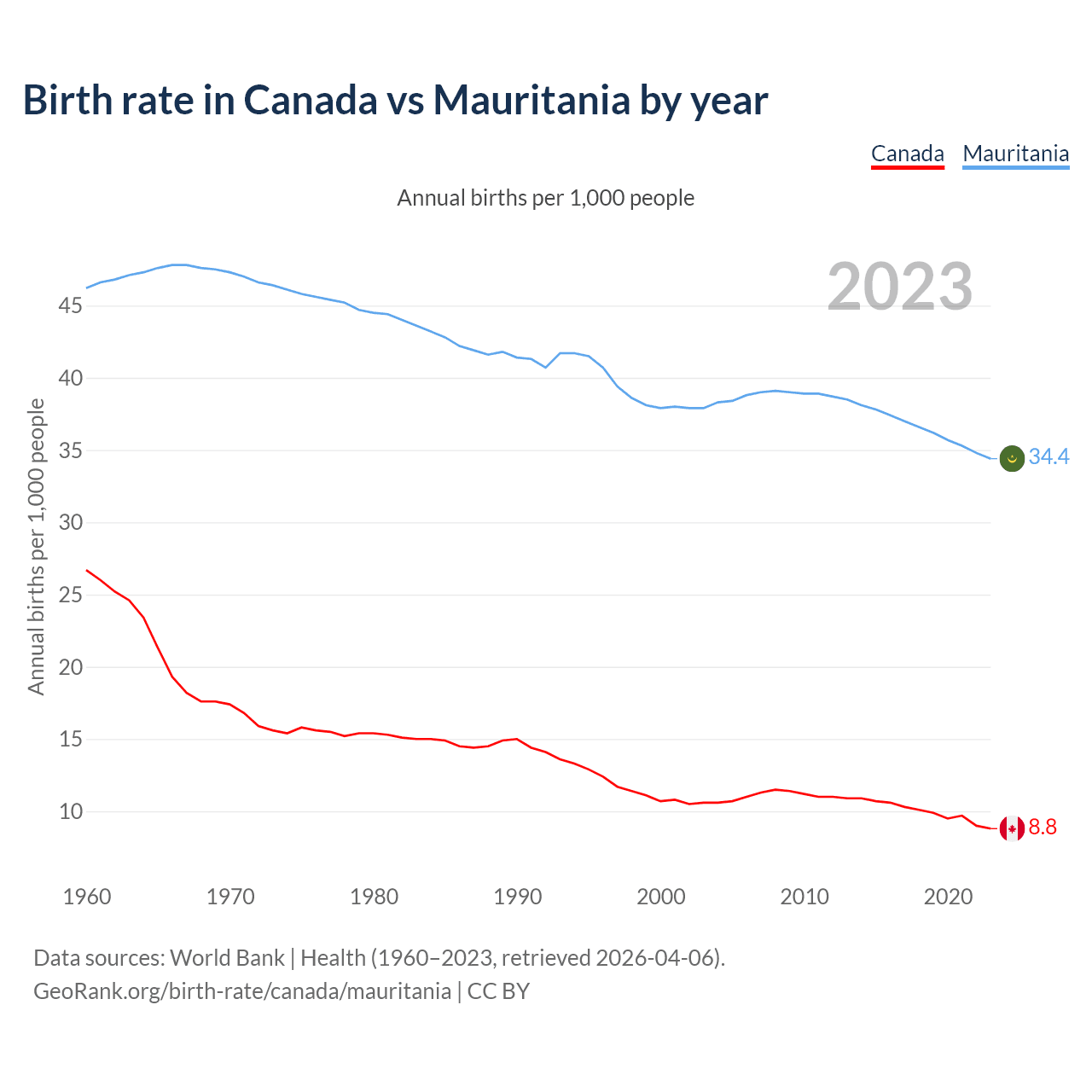 GeoRank.org/birth-rate/canada/mauritania | CC BY