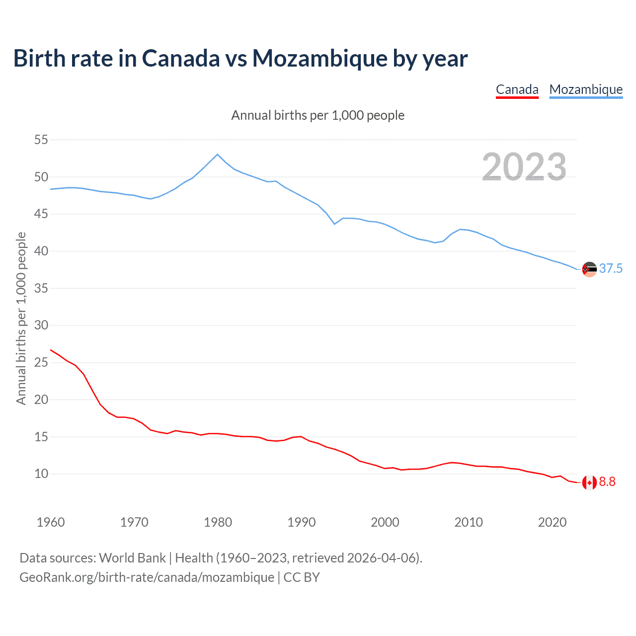 GeoRank.org/birth-rate/canada/mozambique | CC BY