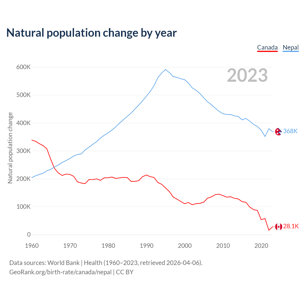 GeoRank.org/birth-rate/canada/nepal | CC BY