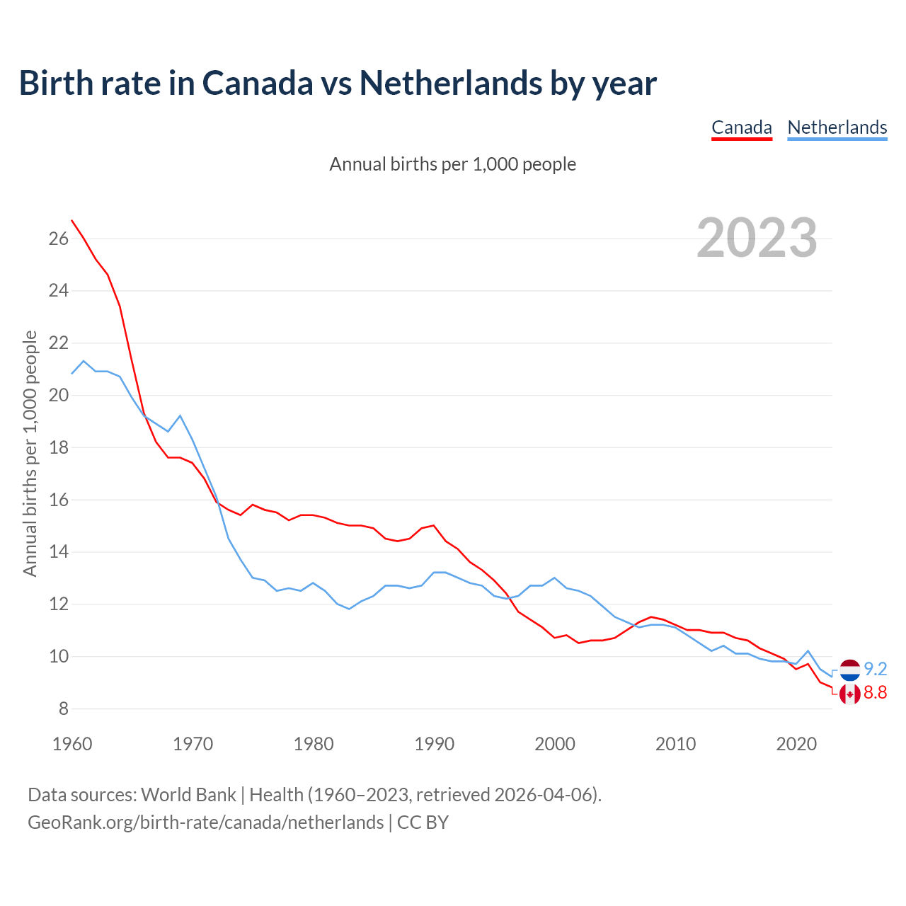 GeoRank.org/birth-rate/canada/netherlands | CC BY