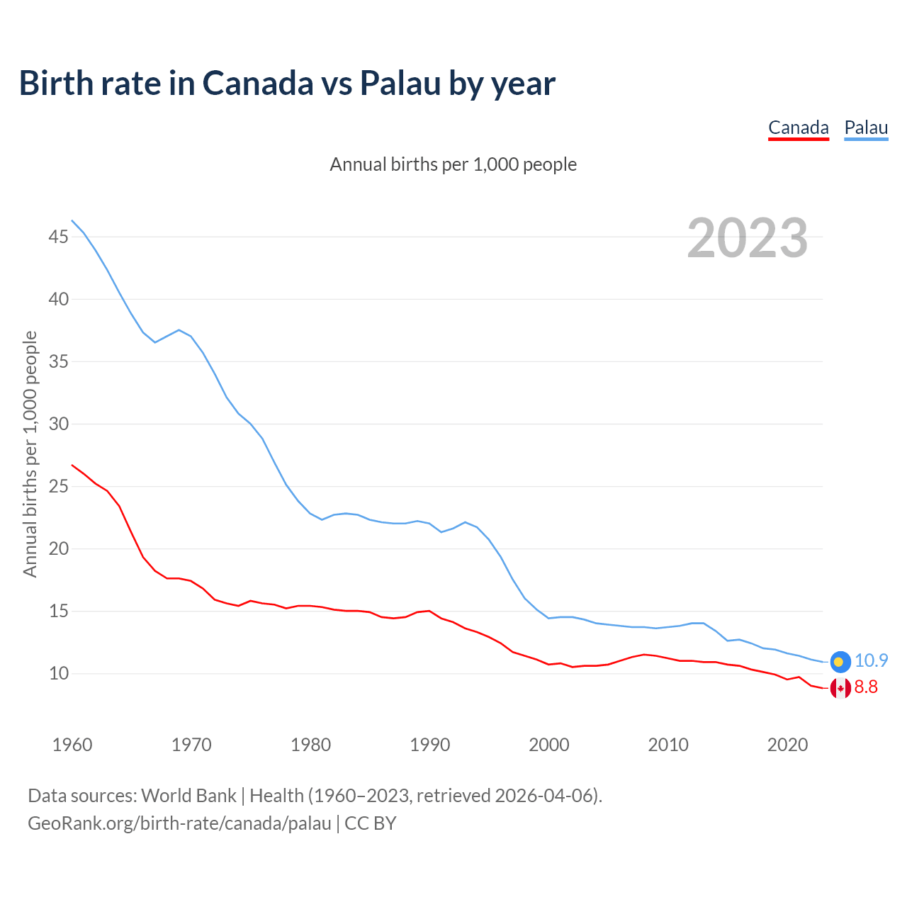 GeoRank.org/birth-rate/canada/palau | CC BY