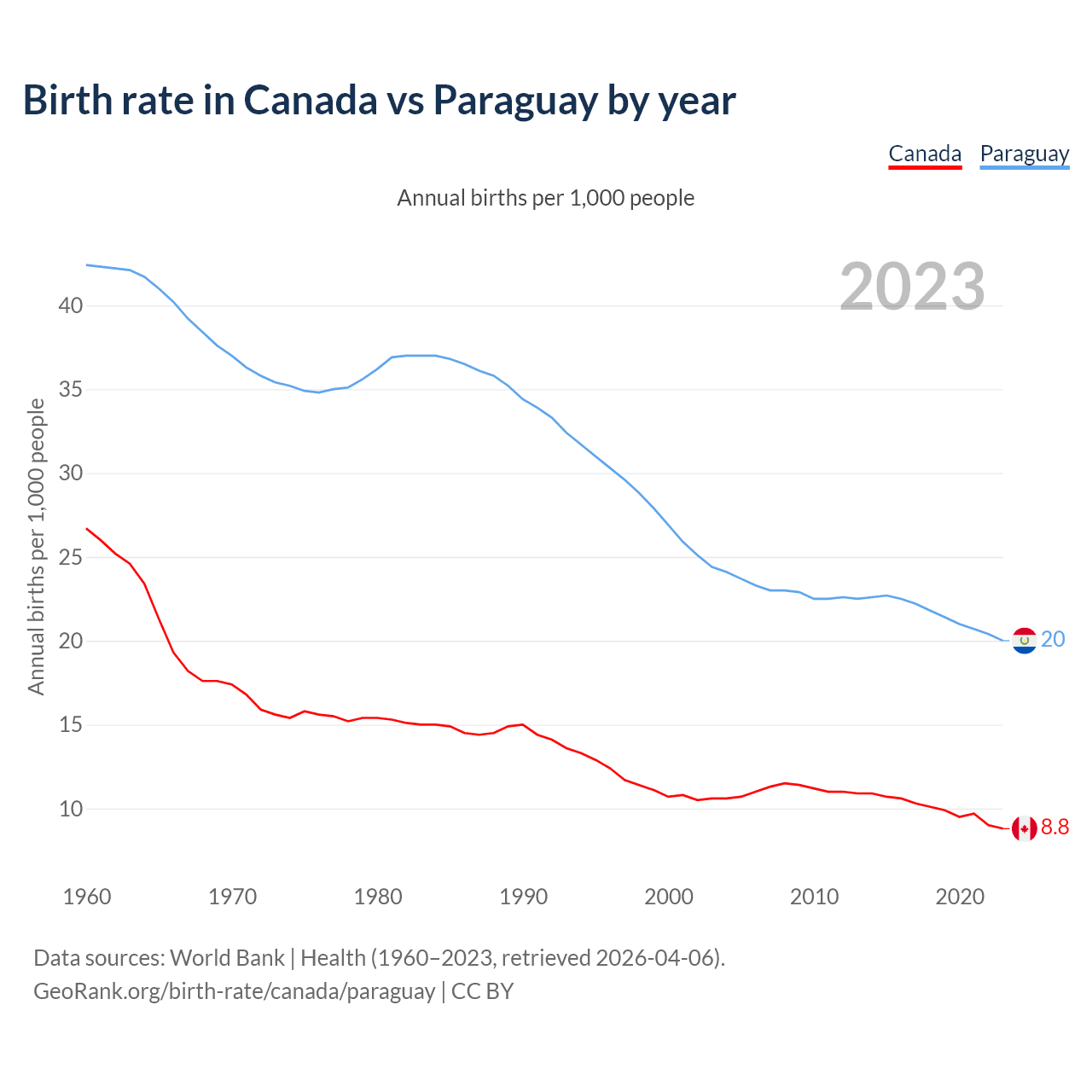 GeoRank.org/birth-rate/canada/paraguay | CC BY
