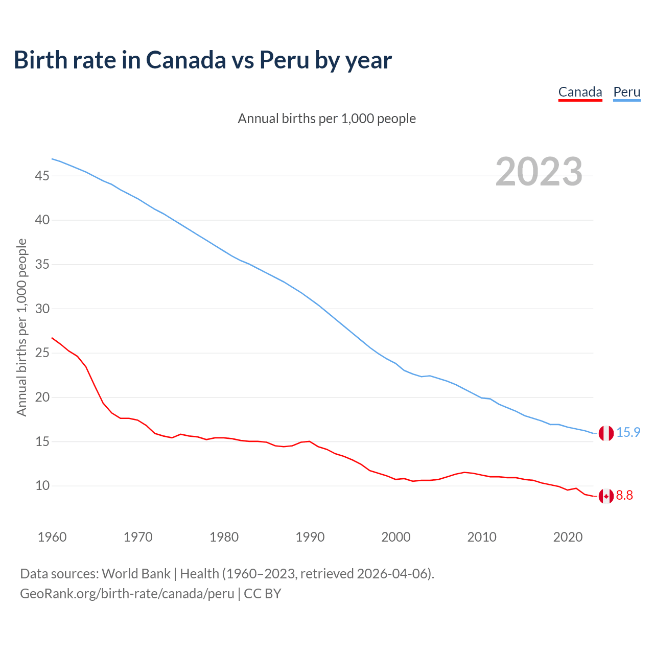 GeoRank.org/birth-rate/canada/peru | CC BY
