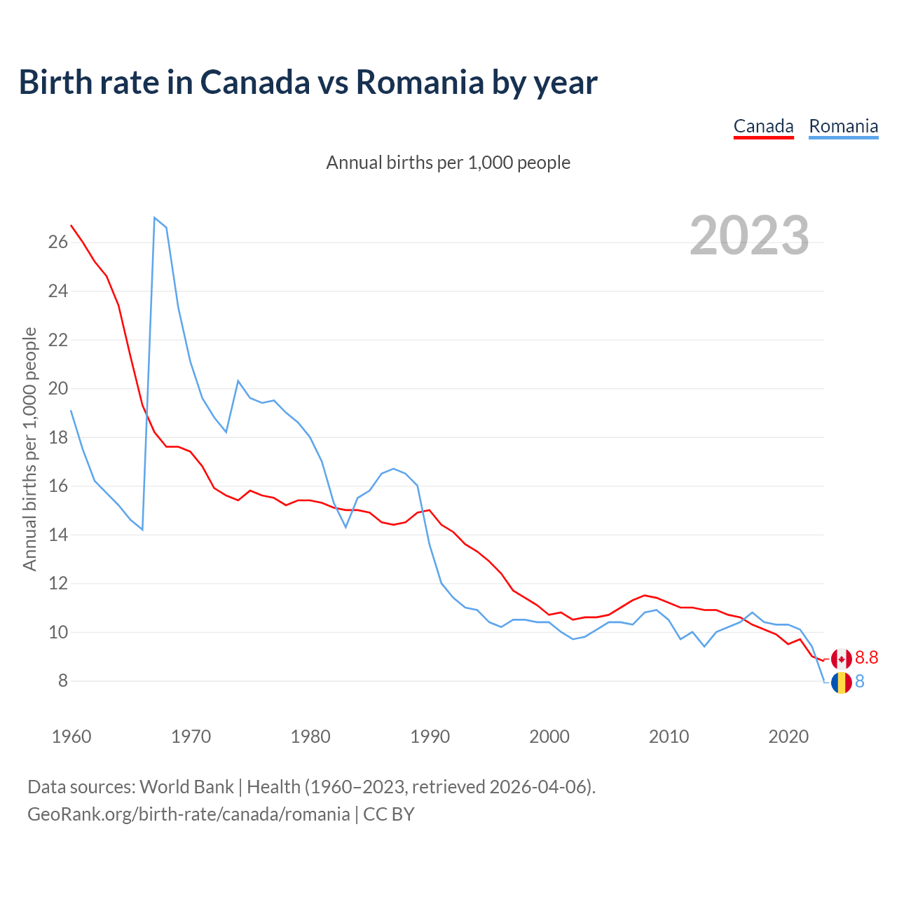GeoRank.org/birth-rate/canada/romania | CC BY