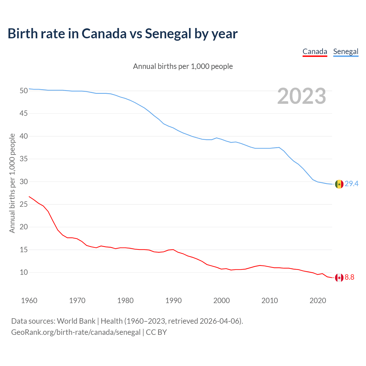 GeoRank.org/birth-rate/canada/senegal | CC BY