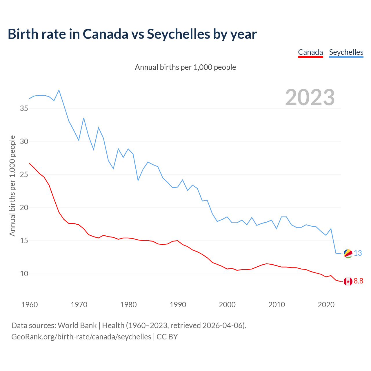 GeoRank.org/birth-rate/canada/seychelles | CC BY